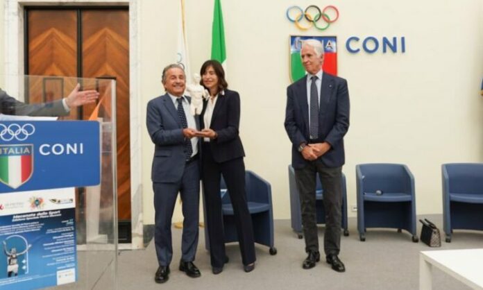 Nel Salone d’Onore del Coni a Roma, questa mattina è andata in scena una edizione del tutto speciale del premio internazionale “Mecenate dello sport”, che dopo dieci anni di premi assegnati a tanti personaggi illustri dello sport mondiale ha voluto dedicare un momento particolare a un simbolo mondiale dei valori dello sport e di umanità, come Pietro Mennea. Il tutto alla presenza della moglie del compianto campione, Manuela Olivieri Mennea, presidente della fondazione che porta il nome del grande campione, e del presidente della Fondazione Varaldo Di Pietro, che ha promosso il premio, il dott. Giovanni Di Pietro.