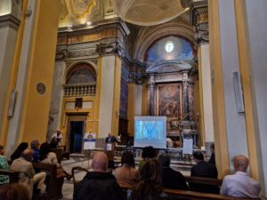 Ad aprire i lavori è stato Massimo Mondini, presidente dell’Associazione Forum Clodii che da oltre 30 anni si occupa di tenere vivo il Duomo di Bracciano, che ha spiegato nel dettaglio la nascita del progetto. E’ seguito l’intervento di Claudio Canonici, Direttore dell’Ufficio Beni Culturali della Diocesi di Civita Castellana, che ha sottolineato l’importanza del Duomo di Bracciano, oggi purtroppo poco utilizzato, ed evidenziato l’importante funzione dell’arte nelle chiese.