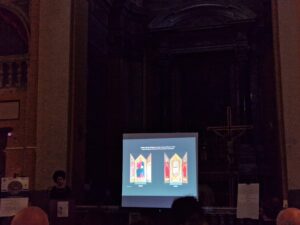 A raccontare i risultati dei lavori fatti nel cantiere sono state invece le due studentesse che se ne sono occupate: Nicole D’Orazio e Elena Mosconi. Grazie alle analisi dei materiali è stato possibile scoprire i vari rimaneggiamenti della cappella, di cui sono state mostrate delle possibili ricostruzioni.