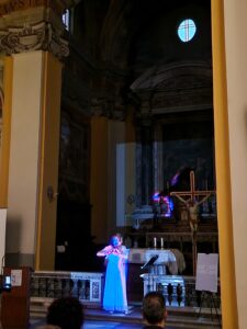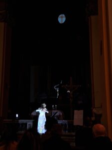 A concludere l’evento, un’apertura sulla contemporaneità con due artisti legati al territorio: Claudio Marani e Monica Limongelli che hanno presentato la loro opera d’arte Spiritus Lucis, un suggestivo connubio di luce e suono che nella penombra della chiesa ha incantato gli spettatori.