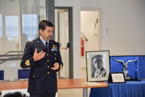 Nella sala conferenze del rinnovato MUSAM, riaperto al pubblico nel mese di giugno dopo i lavori di riqualificazione in occasione del Centenario di Forza Armata, il Brigadier Generale (r) Aldo Del Sordo, presidente dell’Associazione Arma Aeronautica Sezione Monterotondo-Mentana, ha consegnato nelle mani del Comandante, Colonnello Luigi Barbagallo il prestigioso riconoscimento, alla presenza di una rappresentanza di personale della base, dei componenti del consiglio direttivo dell’Associazione e di un gruppo di studenti dell’Istituto Tecnico Aeronautico Santa Maria di Monterotondo (Roma).
