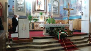 Successivamente con la Banda in testa, il corteo e’ sfilato lungo il corso per arrivare alla Basilica San Giovanni Battista, dove Don Oscar ha celebrato la Santa messa, onorando quanti si sono sacrificati per la pace e la liberta’. Dopo aver benedetto la corona d’alloro, tutti si sono recati alla statua dei caduti, per la deposizione della corona e per gli onori ai caduti e alla Repubblica. La banda ha suonato l’Inno di Mameli davanti a tanti cittadini accorsi numerosi per la celebrazione.