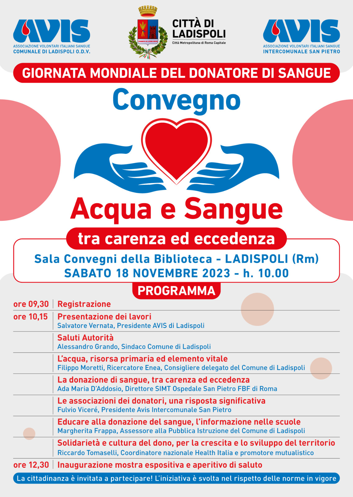 Ladispoli, Avis, il 18 in biblioteca il convegno “Acqua e Sangue” acqua e sangue locandina