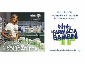 Dal 17 al 24 novembre 2023, in occasione della Giornata Mondiale dei diritti dell’Infanzia, avrà luogo l’undicesima edizione dell’iniziativa nazionale “In Farmacia per i Bambini”, organizzata dalla Fondazione Francesca Rava Onlus e dedicata alla sensibilizzazione dei diritti dei più piccoli ed alla raccolta di farmaci da banco, alimenti per l’infanzia e prodotti pediatrici destinati a minori in povertà sanitaria.