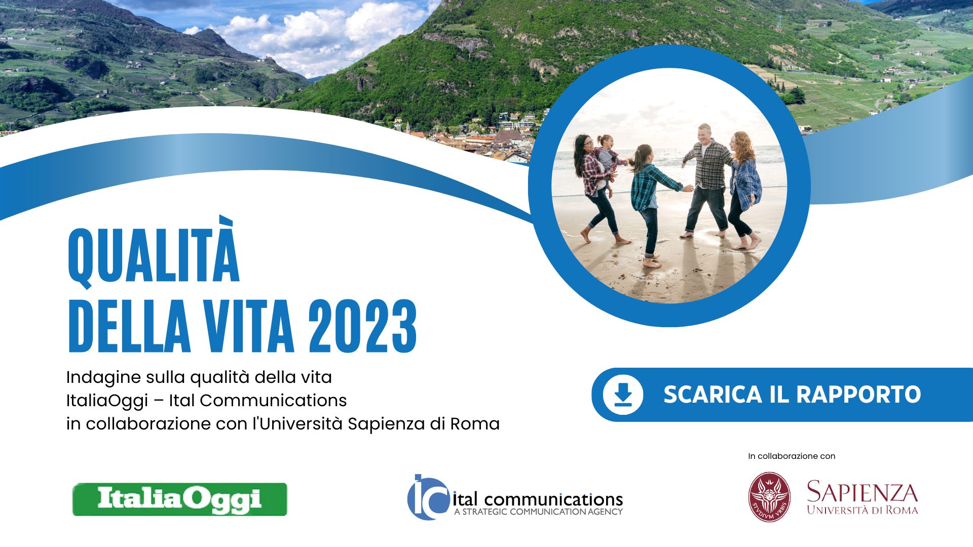 Per Attilio Lombardi, Founder di Ital Communications: “L’Indagine ItaliaOggi-Ital Communications, coordinata dall’Università Sapienza di Roma, rappresenta uno dei più completi e analitici studi sulla qualità della vita degli italiani pubblicati nel nostro Paese. La collaborazione alla 25esima edizione conferma la volontà di Ital Communications di fornire all’opinione pubblica, alle Istituzioni e ai media italiani, uno scenario completo per orientarsi in modo più efficace nelle azioni da intraprendere, in un momento in cui pensiamo sia di fondamentale importanza rimanere al fianco dei cittadini e delle imprese”.