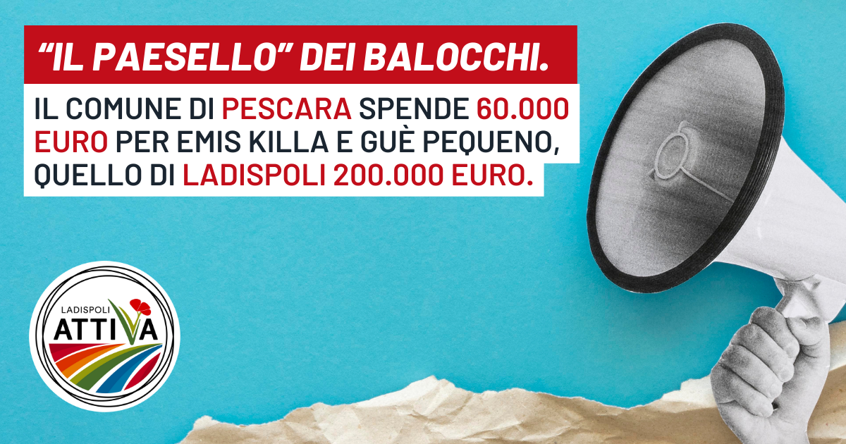 Come è possibile che a Pescara il compenso del duo Killa-Pegueno per un concerto di qualche anno fa sia stato di 60.000 euro (scatenando tra l’altro una forte irritazione tra i consiglieri di Fratelli D’Italia pescaresi che lo reputavano troppo esoso), mentre qui a Ladispoli (secondo il bilancio preventivo) si preveda un costo di 200.000 euro?
