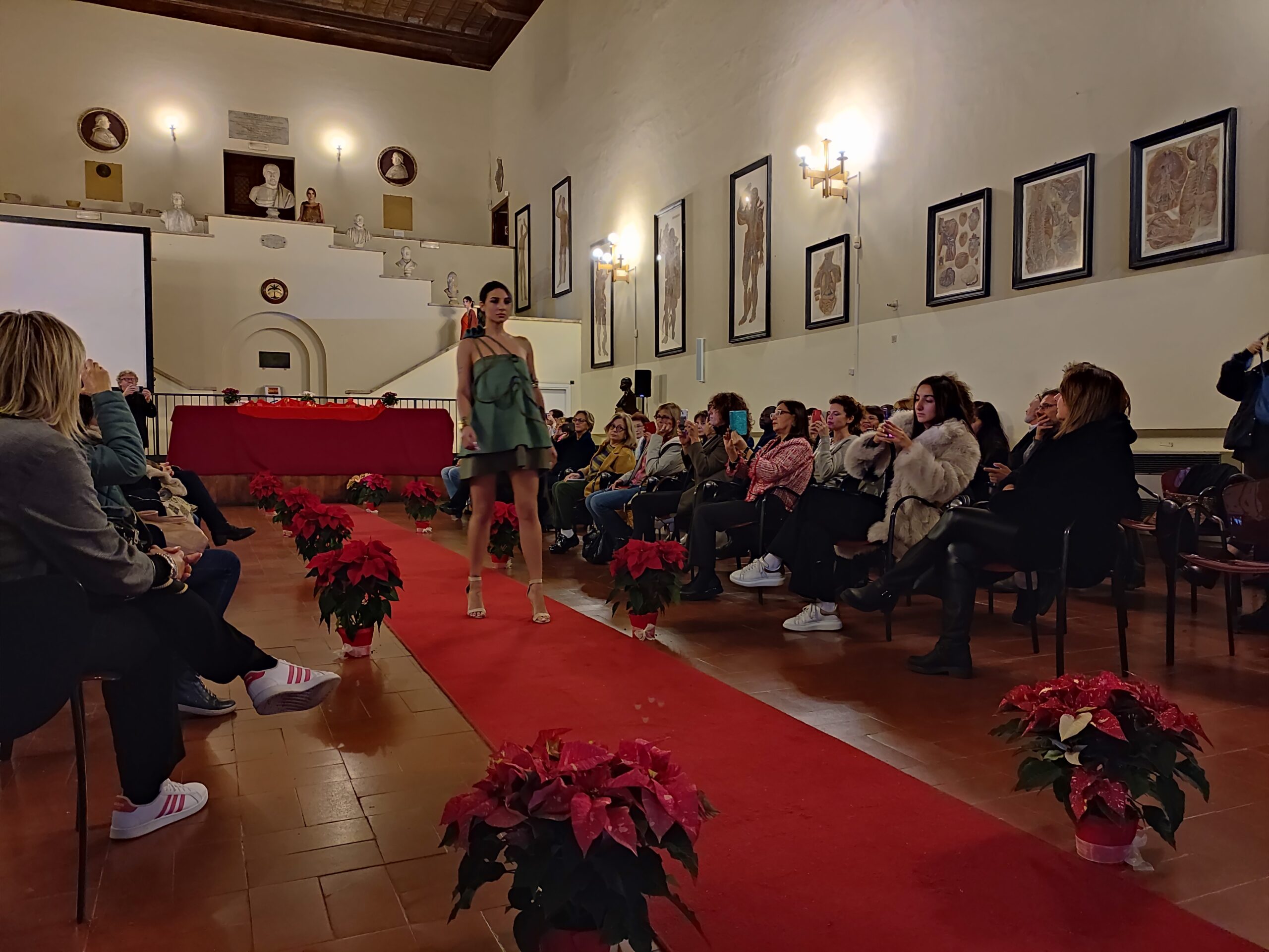 Una vera e propria collezione con capi di Alta Moda, indossati da modelle, ha sfilato per questi aspiranti stilisti fuggiti da storie drammatiche, che hanno avuto la possibilità una volta arrivati in Italia di ricevere una formazione professionale riqualificante in un settore come quello della Couture frequentando, sotto la guida dei docenti, il corso della MAM – Maiani Accademia Moda da sempre impegnata nella formazione “utenze speciali”. “Ritengo che le competenze altamente professionali possano fornire un riscatto e una nuova forma espressiva per chi ha vissuto esperienze di vita difficili – afferma Maria Maiani – l’affiancamento e collaborazione con la ASL ROMA 1 ha permesso agli allievi in soli sei mesi di realizzare capi con lavorazioni di Alta Moda nonostante l’inesperienza iniziale e le barriere linguistiche.” Gli abiti giocano su accostamenti di tessuti come lana, cotone, neoprene e sulle linee lavorate in varie soluzioni, ma sempre essenziali per costruire minidress, gonnelloni e lunghi abiti asimmetrici decorati da ghirigori, macramè, punto smog, tutte lavorazioni eseguite rigorosamente a mano. Voluminosi bracciali realizzati grazie al corso dei gioielli creato dalla ASL Roma 1 diventano accessori preziosi. Arancio, verde oliva e salvia, i colori preferiti, mescolati alle sfumature del nocciola e a fantasie mélange.