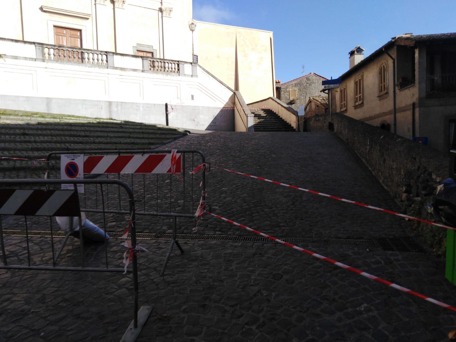 Il vento fa cadere dal tetto del Duomo di Bracciano lastre di peperino. Interdetta la piazza dai VVFF del fuoco. Sospese le attività del Museo del Duomo.