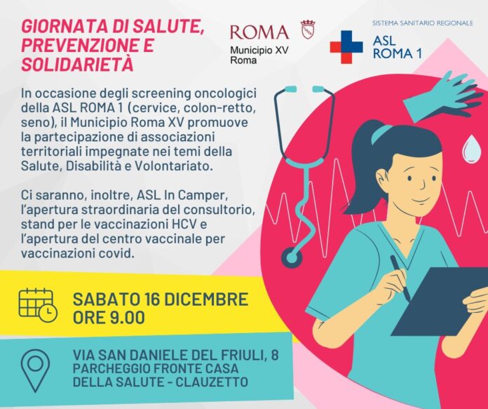 “Un’intera giornata dedicata alla prevenzione: è l’appuntamento di domani 16 dicembre dalle 9.00 alle 18.00 in Via San Daniele del Friuli a Labaro con Asl Roma 1 per gli screening oncologici e le associazioni del territorio che amplieranno l’offerta sanitaria e sociale con iniziative dedicate a salute, prevenzione e solidarietà.