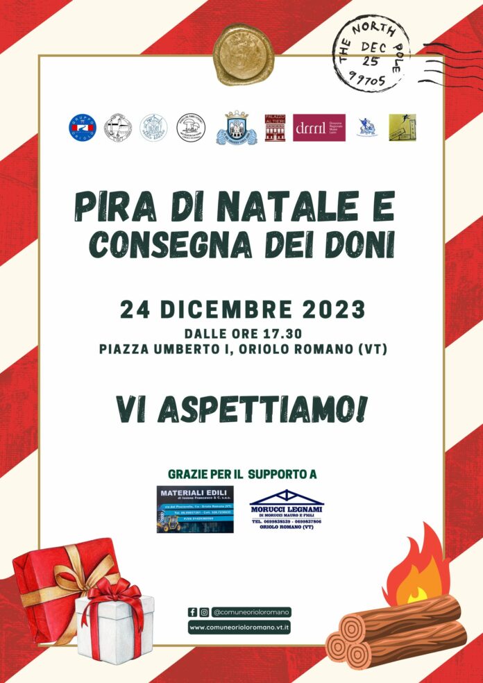 Ricordiamo che è possibile lasciare i doni che si vogliono far recapitare ai propri piccoli contattando la Pro Loco Oriolo Romano o portandoli il 23 dicembre dalle ore 10.00 alle ore 12.00 presso la Biblioteca comunale