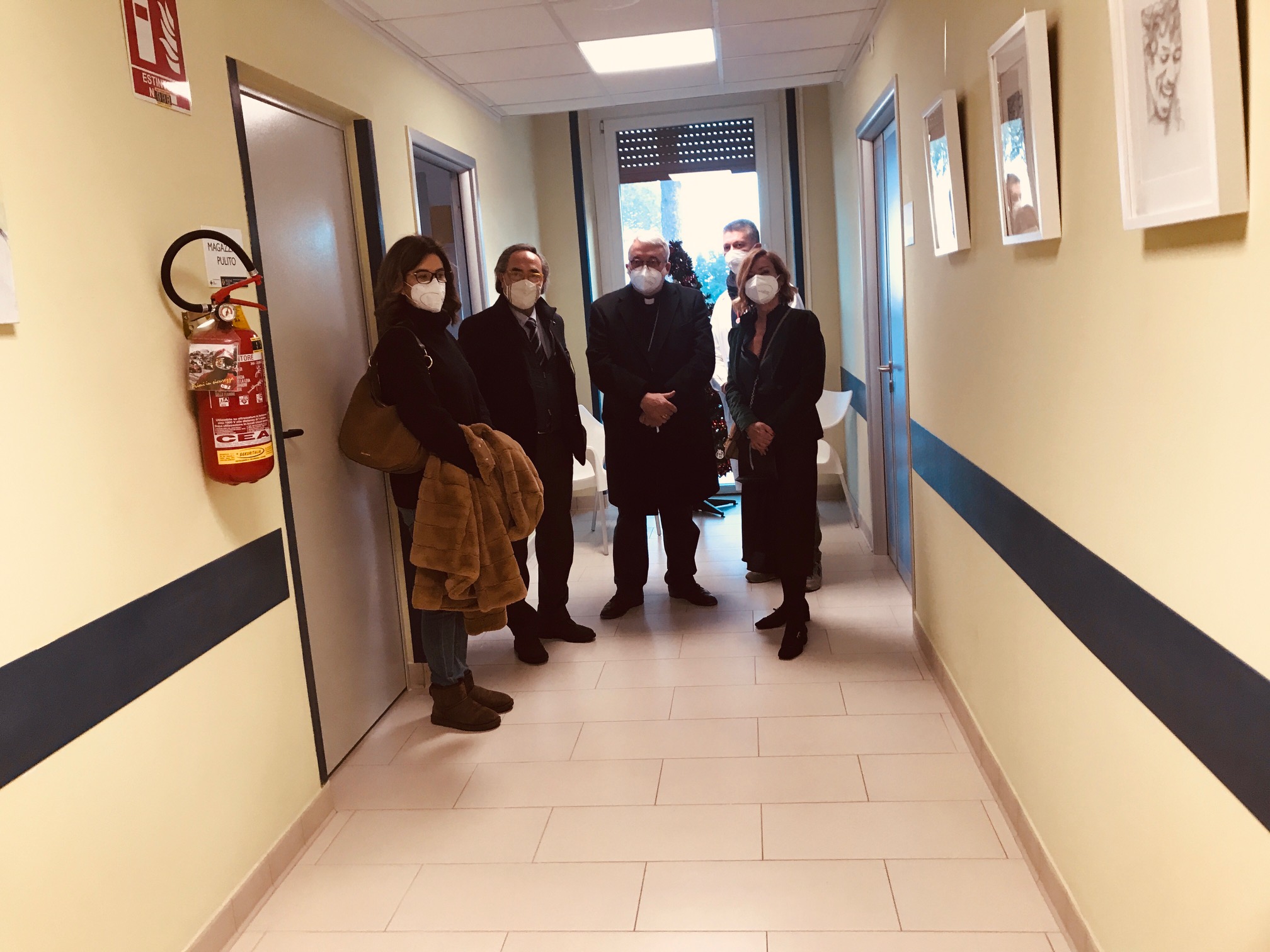 La mattinata si è conclusa con la visita al nuovo reparto di Oncologia, dove era appena stato allestito uno spazio espositivo di quadri eseguiti, con tecnica mista ad olio o carboncino, dalla pittrice romana Elisabetta Del Brocco. Sono otto raffigurazioni di volti con speciali sorrisi.