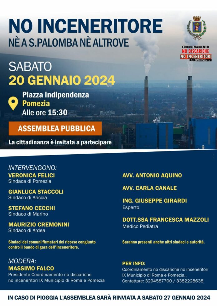 Organizzata dal Coordinamento dei Comitati no discariche no inceneritori del IX Municipio di Roma e Pomezia, si terrà sabato 20 gennaio prossimo alle 15.30, in Piazza Indipendenza a Pomezia una assemblea pubblica. Interverranno i sindaci di Pomezia, Ardea, Ariccia e Marino, firmatari del ricorso congiunto contro il bando di gara dell’inceneritore, pubblicato da Roma Capitale il 16 novembre scorso, ma saranno presenti anche altri Sindaci e Autorità contrari al mega impianto, oltre alle tante Associazioni in campo degli altri territori interessati. In attesa del pronunciamento del Consiglio di Stato sui ricorsi presentati dai Comitati e dalle Associazioni contro il piano gestione dei rifiuti di Roma, voluto dal sindaco Gualtieri, il Coordinamento ha organizzato questa assemblea pubblica per informare la cittadinanza del grave impatto che il mega-inceneritore da 600 000 t/a avrebbe sul nostro territorio, NON ESISTE UN INCENERITORE CHE NON PRODUCA INQUINAMENTO, ANCHE QUELLI DI NUOVA GENERAZIONE. Il sito scelto, sulla via Ardeatina poco oltre il km 23,00, ai confini con i Comuni di Pomezia, Ardea, Albano e a ridosso anche con il Comune di Ariccia, si trova a più di 20 km dalla Capitale, lontano quindi dai cittadini romani, in un territorio già compromesso dall’inquinamento della discarica di Roncigliano, che dista poche centinaia di metri dal terreno dell’Inceneritore, e poco più lontano insiste la discarica di amianto di Valle Caia. Dove ci sono tante aziende agricole di eccellenza e di borghi abitati, con una viabilità provinciale già gravata dal traffico pesante prodotto dalle industrie presenti. In questo territorio Gualtieri intende costruire questo enorme impianto, volendo risolvere la fallimentare gestione dei rifiuti di Roma. Ma bruciare i rifiuti significa affrontare il problema per la coda anziché per la testa. I principi dell’economia circolare adottati dall’Unione Europea e dall’Italia e anche dalla Regione Lazio, finalizzati all’obiettivo Rifiuti Zero, prevedono la riduzione, la differenziazione, il riuso e il recupero di materia. Il ricorso all’incenerimento e alla discarica sono all’ultimo posto, sia perché hanno effetti climalteranti, sia perché, riducendo in questo modo il volume dei rifiuti, il residuo da smaltire diventa minimo. Infatti, il piano regionale dei rifiuti, adottato dalla Regione Lazio nel 2020, non prevedeva la necessità di nuovi inceneritori e indicava nell’attuale inceneritore di S. Vittore un impianto sufficiente, con la prospettiva di ridurne l’utilizzo man mano che crescerà il recupero di materia e il riciclo. Come si attuano questi principi? Con la raccolta differenziata. I Comuni firmatari del ricorso sono al 70% circa di raccolta differenziata, gran parte degli altri comuni della Regione Lazio hanno raggiunto percentuali importanti di Raccolta differenziata, attivando il porta a porta, e postazioni controllate di conferimento. Questo è reso possibile certo dall’impegno dei cittadini. Roma è ferma al 45% circa di raccolta differenziata. Sul territorio nazionale, vediamo varie città che stanno riducendo le volumetrie di rifiuti per gli inceneritori man mano che aumenta la percentuale di raccolta differenziata, Roma ne vuole costruire uno nuovo, non con i fondi europei, perché l’UE non finanzia nuovi inceneritori. L’inceneritore sarà lontano dai cittadini romani, ma sarà vicino a noi. Inquinerà l’aria che respiriamo, con effetti certificati sulla salute, abbatterà l’economia delle nostre zone, graverà sulle nostre strade, consumerà grandi quantità di acqua. È urgente informarsi e mobilitarsi contro un ecomostro che comprometterà per oltre 30 anni la vita dei nostri territori. Invitiamo tutta la cittadinanza a partecipare all’assemblea. Parleranno tecnici, medici e avvocati, oltre a dei Sindaci per illustrare che cosa è un termovalorizzatore: il nome inganna, perché non valorizza proprio nulla e distrugge tanto!