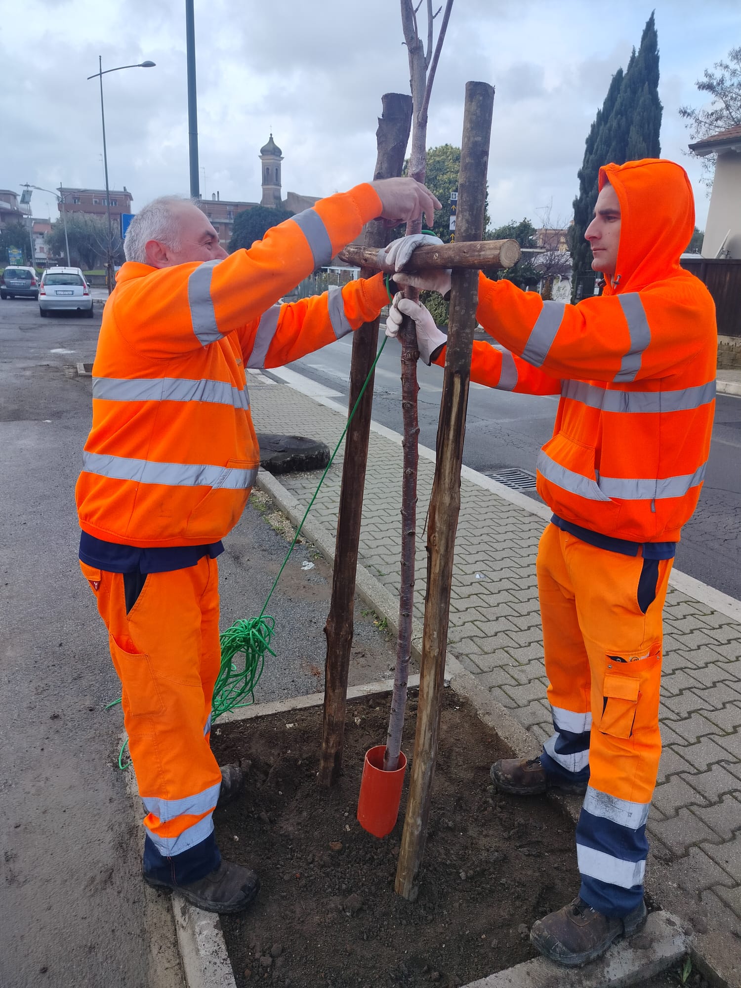 Nuove alberature in Via Settevene Palo a Cerveteri. Questa mattina infatti, il personale della Multiservizi Caerite ha provveduto alla piantumazione di 5 Prunus Kanzan e di 6 aceri campestre alternati, che sono andati a sostituire i vecchi platani che fino a qualche tempo fa insistevano sul marciapiedi all’inizio della salita che conduce alla parte alta del paese.