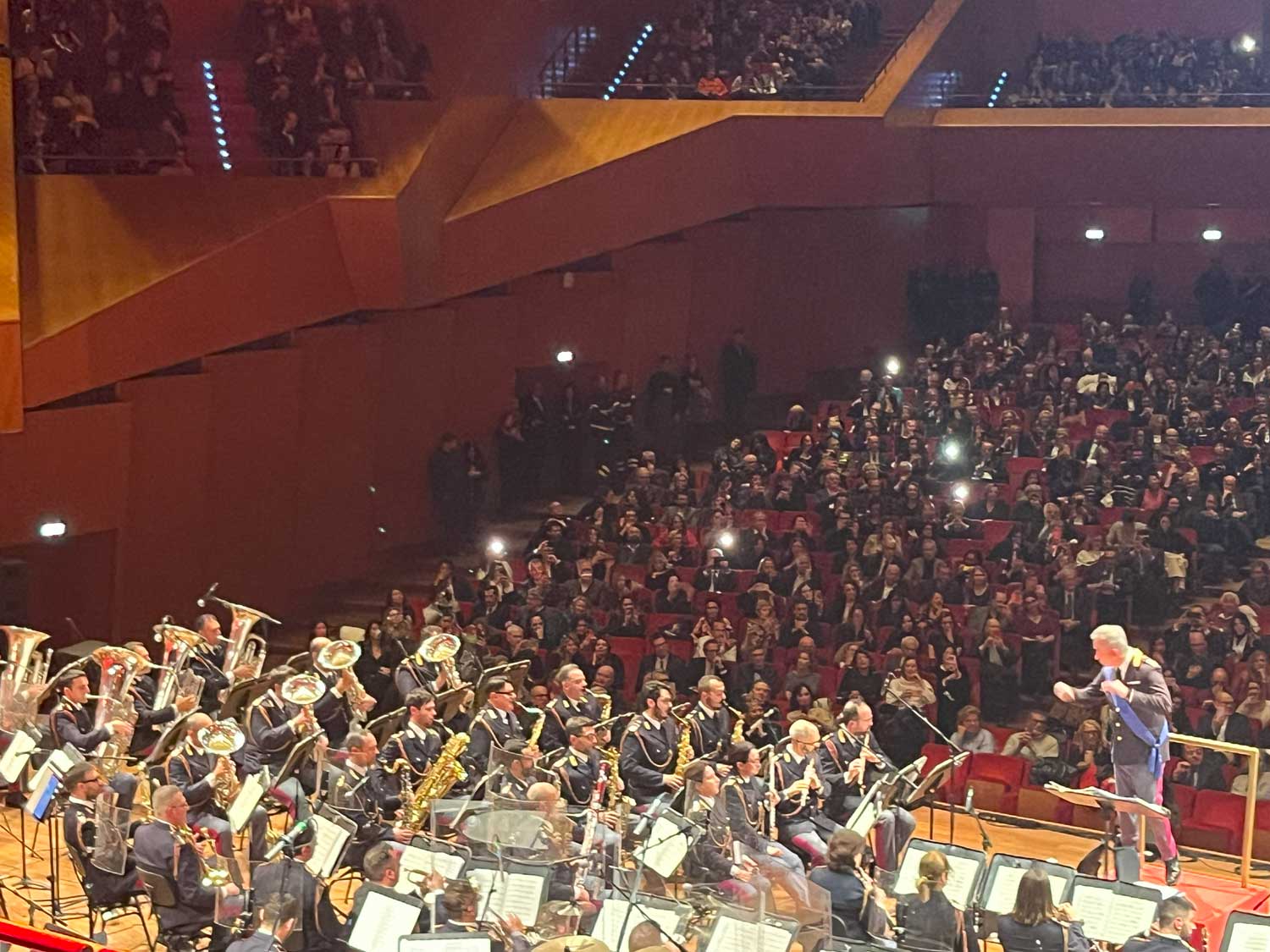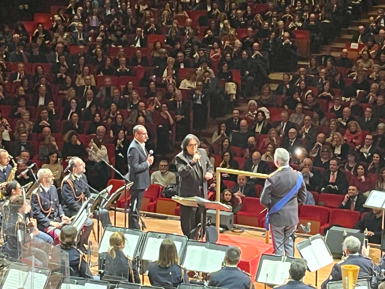 Lo spettacolo è proseguito con la performance della giovane Angelica Stuppia (finalista di The voice kids), la splendida voce di Serena Autieri e gli eccezionali violinisti Olga Zakharova e Giuseppe Gibboni, quest’ultimo – ventiduenne che vincendo il 56˚premio Paganini lo ha riportato in Italia dopo 24 anni – ha suonato magistralmente La campanella di Niccolò Paganini con un violino Stradivari del 1734. È stata poi la volta di Va, pensiero terza parte del Nabucco di Giuseppe Verdi, interpretata dal Coro dell’Accademia di Santa Cecilia conferendo un’atmosfera d’altri tempi alla sala; a seguire l’intramontabile voce Al Bano.