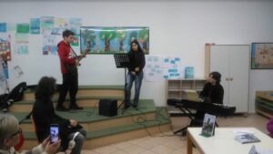 La lettura di alcuni passi del romanzo è stata intercalata dalla musica del gruppo Asscult Novarmonia, diretto da Francesca Laura Vittoria Reboa; ragazzi in mezzo ad altri ragazzi, sebbene a livellare tutti i presenti sulla stessa anagrafica indefinita è stata la vivace curiosità e la fiducia nel lasciarsi trasportare da Maria Delfina, donna prima che scrittrice, dotata di un’umanità immediata che riesce a trasferire nelle sue pagine.