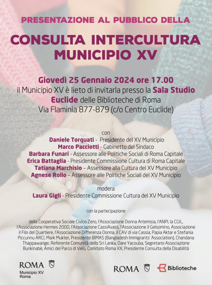 “Nasce per la prima volta in Municipio XV la Consulta Intercultura, nuovo organo territoriale utile a favorire il dialogo tra cittadini di differente provenienza geografica, culturale e religiosa e a costruire una Comunità territoriale più coesa.