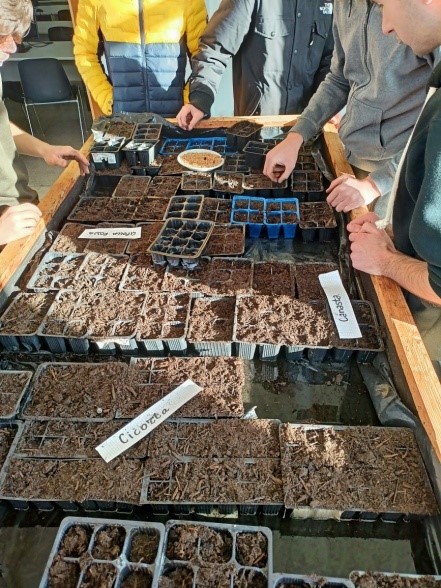Con la partecipazione del “prof” Lancellotti inizialmente i ragazzi hanno svolto una lezione teorica in classe dove si è parlato delle fasi principali e dei materiali utilizzati nell’attività di vivaio per la produzione di piantine orticole. Dalla preparazione dei contenitori, alla scelta del substrato migliore, fino alla semina fatta con cura dai nostri ragazzi. Gli ortaggi seminati sono stati insalata canasta, bieta verde e rossa, cipolla bianca e di tropea, lenticchie, rucola, cicoria, broccoletti. Periodicamente i ragazzi a scuola con turni prestabiliti si occuperanno personalmente della gestione dei vari contenitori. L’obiettivo è quella poi del trapianto e gestione fino alla raccolta, dove ogni studente potrà realizzare e gustare così la propria cassetta mista di ortaggi.