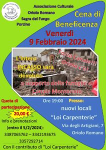 Oriolo Romano, cena di beneficenza per Canale Monterano