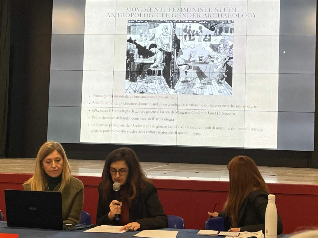 Al termine delle relazioni l’allieva Alessandra, pone a tutte le relatrici una domanda: c’è una caratteristica comune in tutte le donne della storia? La risposta è unica. Sì: sono il coraggio, l’autonomia di pensiero, la capacità di lavorare insieme, la resistenza. Credo che queste siano anche le caratteristiche delle nostre relatrici che, unite nell’impegno di dimostrare l’importanza della donna nelle civiltà antiche, puntano l’attenzione sugli stereotipi e i clichés che hanno lasciato la donna nell’ombra facendo perdere la complessità e le sfumature del nostro passato. Le relatrici ritengono che l’antidoto agli stereotipi maschilisti sul nostro vissuto di donne è tendere ad un’archeologia egualitaria e sociale. Possiamo parlare di “gender archeology” perché l’obiettivo dell’archeologia di genere è rivendicare, non un primato femminista, ma i ruoli della parità tra uomini e donne in modo da scardinare la visione stereotipata sul ruolo e sulla posizione sociale delle donne nelle comunità antiche. L’uguaglianza di genere è un diritto umano fondamentale e necessario per costruire un mondo pacifico, prospero e sostenibile.