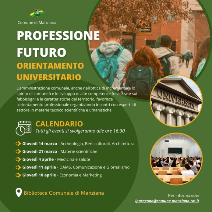 Giovedì 21 marzo 2024, presso la Biblioteca comunale di Manziana, si terrà il secondo incontro di orientamento universitario organizzato dal Comune di Manziana, dedicato ad alcune materie scientifiche. L’evento vedrà la partecipazione di esperti del settore, pronti a condividere le proprie esperienze e conoscenze con i giovani studenti del territorio.