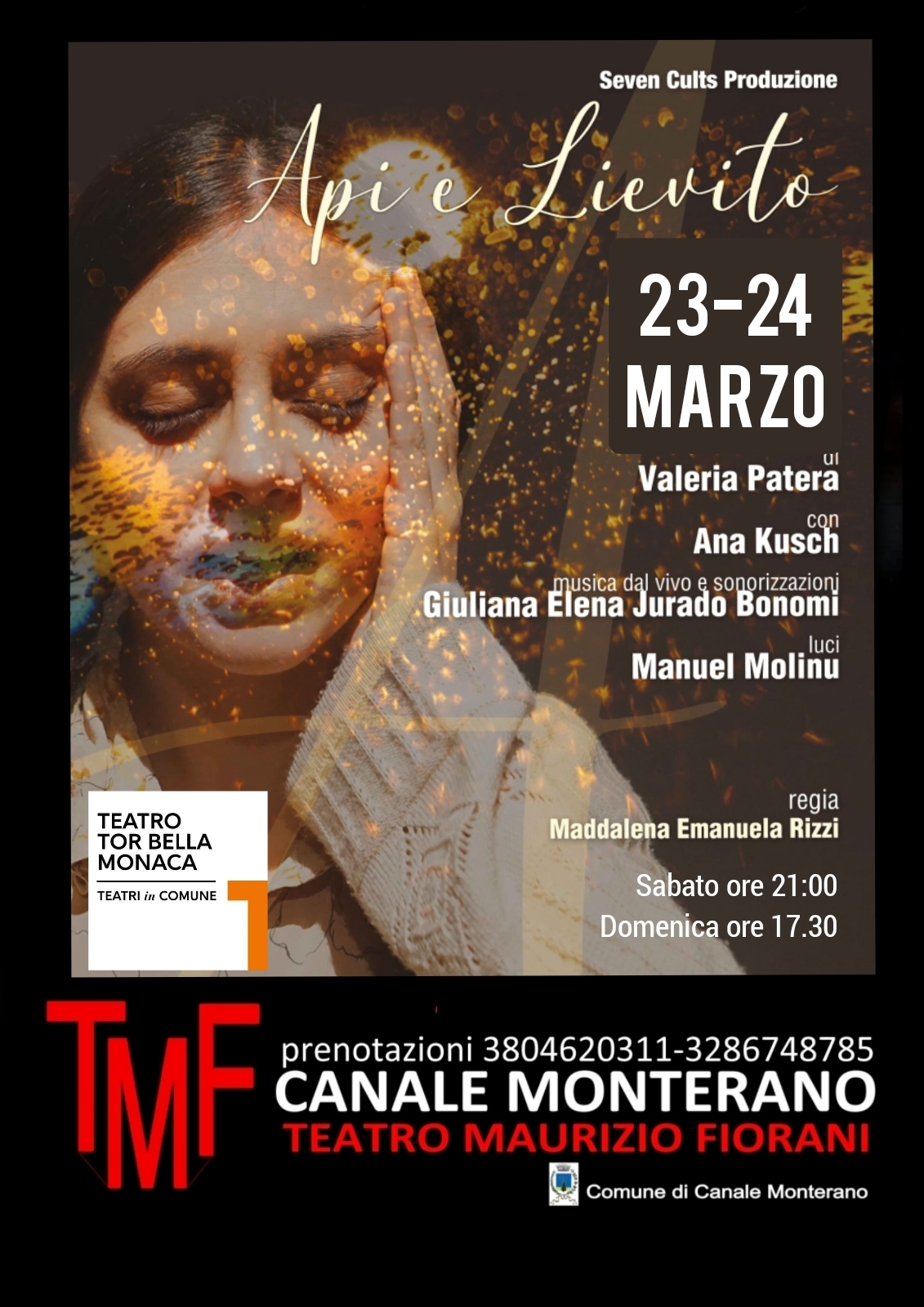 Il TMF questo fine settimana ospita lo spettacolo “Api e lievito” di Valeria Patera, con Ana Kush. Una produzione del Teatro Tor Bella Monaca di Roma per la regia di Maddalena Emanuela Rizzi, in scena sabato 23 marzo alle 21 e in replica domenica 24 marzo alle 17,30.