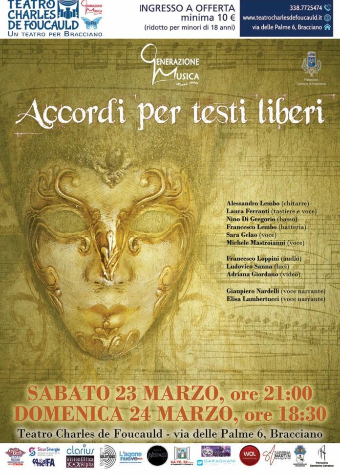 Sabato 23 e domenica 24 marzo, al teatro Charles De Foucauld di Bracciano, spettacolo di Teatro-Canzone a cura di Generazione Musica.