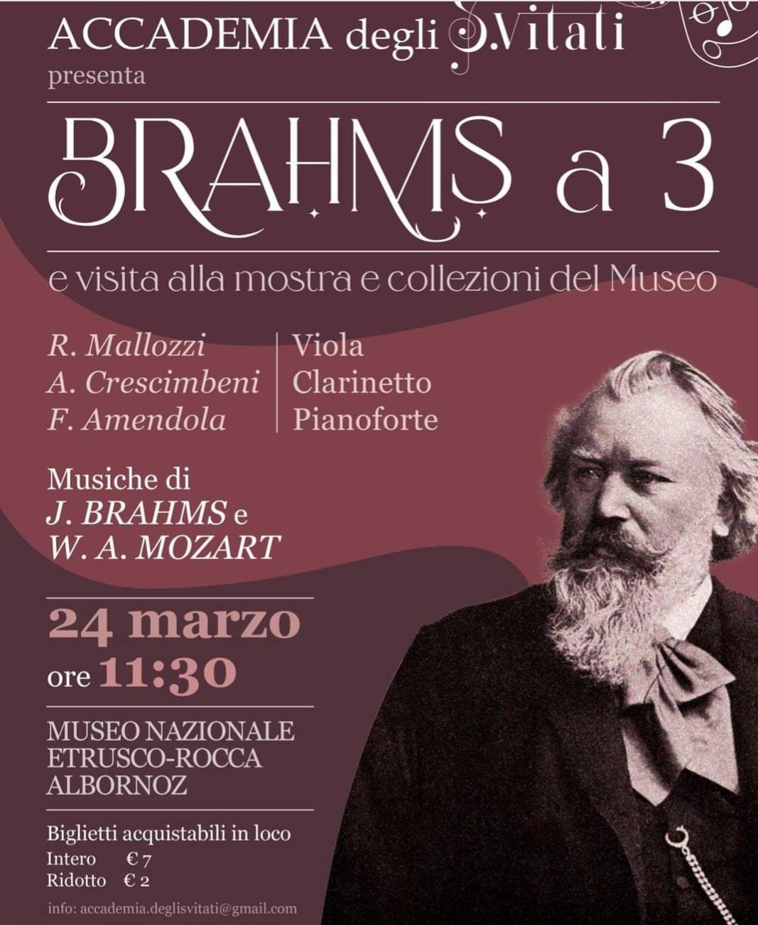 Viterbo, Museo Rocca Albornoz, domani c’è… “Brahms a 3”