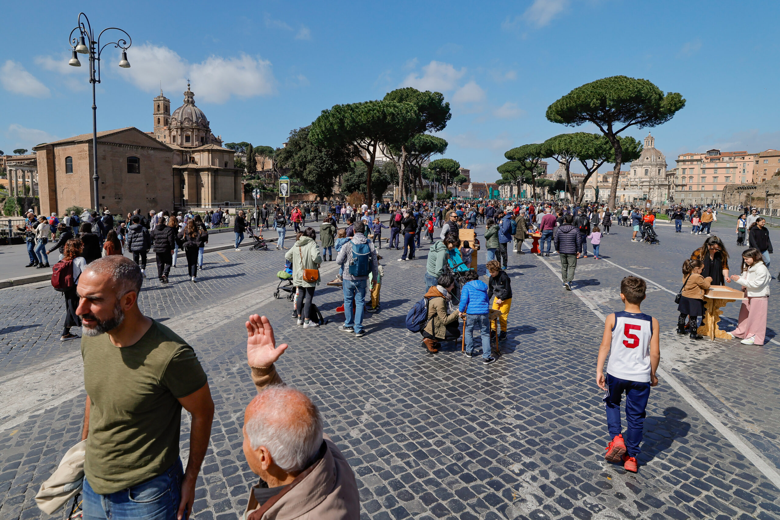 In una via dei Fori Imperiali gremita di romani e turisti che hanno approfittato della domenica ecologica per passare una giornata all’aria aperta, grandi e piccini hanno potuto riscoprire i Giochi di Strada, grazie all’ evento organizzato dall APS Rigeneriamoci e curato da Dora Cirulli. La manifestazione vincitrice dell’avviso pubblico “Raccolta di proposte progettuali per la realizzazione di eventi, manifestazioni e progetti di interesse per l’Amministrazione Capitolina” promosso da Roma Capitale in collaborazione Zetema Progetto Cultura, ha fatto registrare numeri da record ed una partecipazione senza precedenti, in uno scenario unico al mondo. Il tiro alla fune, la campana, il tiro al barattolo i giochi da tavolo e a terra, la corsa con le uova i quattro cantoni, in un clima gioioso e coinvolgente sin dalle prime ore del mattino sino al oltre le 17.00, hanno regalato emozioni e divertimento a tutti i partecipanti.