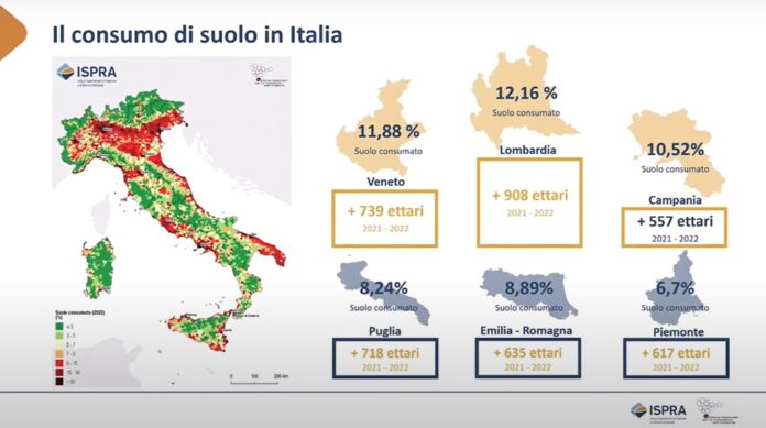 Prendendo spunto dalla nota trasmissione televisiva “Caro marziano” di Pierfrancesco Diliberto, in arte Pif, sarebbe oggettivamente difficile spiegare ad un “marziano”, ovvero a qualcuno che non conosce certe tortuose logiche umane, la contraddizione tra il cercare la sicurezza e l’autosufficienza alimentare e non fare nulla di concreto per raggiungere questo saggio e sacrosanto obiettivo. Un esempio su tutti è il non contrastare il consumo del suolo, ossia la continua e incessante riconversione di terra potenzialmente coltivabile in costruzioni civili ed industriali, infrastrutture e addirittura impianti fotovoltaici a terra, anche se non ce ne sarebbe assolutamente bisogno perché di abitazioni non utilizzate, fabbriche abbandonate e tetti dove installare impianti fotovoltaici ce n’è una quantità gigantesca e comunque quantificata. Allo stato attuale non ci sono leggi europee o nazionali a riguardo ma solo qualche cosa di regionale. Pare che una proposta di legge giaccia ormai da molti anni in Parlamento, ma i fatti ci fanno pensare che arginare il consumo del suolo non è considerato una priorità strategica per l’Italia. Al marziano di Pif sarebbe difficile spiegare come si fa in pratica ad aumentare la SAU e contemporaneamente a continuare a costruire sul quel poco di pianure alluvionali, vulcaniche e da sollevamento di cui dispone il nostro Paese. Le pianure occupano il 23.2% della sua superficie e, in gran parte, non sono ormai più coltivabili. E’ vero che abbiamo anche un 41% di terreno collinare, ma sia l’allevamento degli animali che l’agricoltura hanno dei grossi limiti dovuti se non altro alla scarsa disponibilità di risorse idriche. Per sensibilizzare i decisori politici e la popolazione abbiamo voluto approfondire l’argomento coinvolgendo Michele Munafò, dirigente dell’Istituto Superiore per la Protezione e la Ricerca Ambientale (ISPRA) e curatore del report “Consumo di suolo, dinamiche territoriali e servizi ecosistemici”. Munafò, nella sua dettagliata analisi della situazione, fornisce a tutti noi le necessarie informazioni utili a prendere consapevolezza e provvedimenti a salvaguardia del benessere degli italiani e del futuro dell’agricoltura e della zootecnia del nostro Paese.
