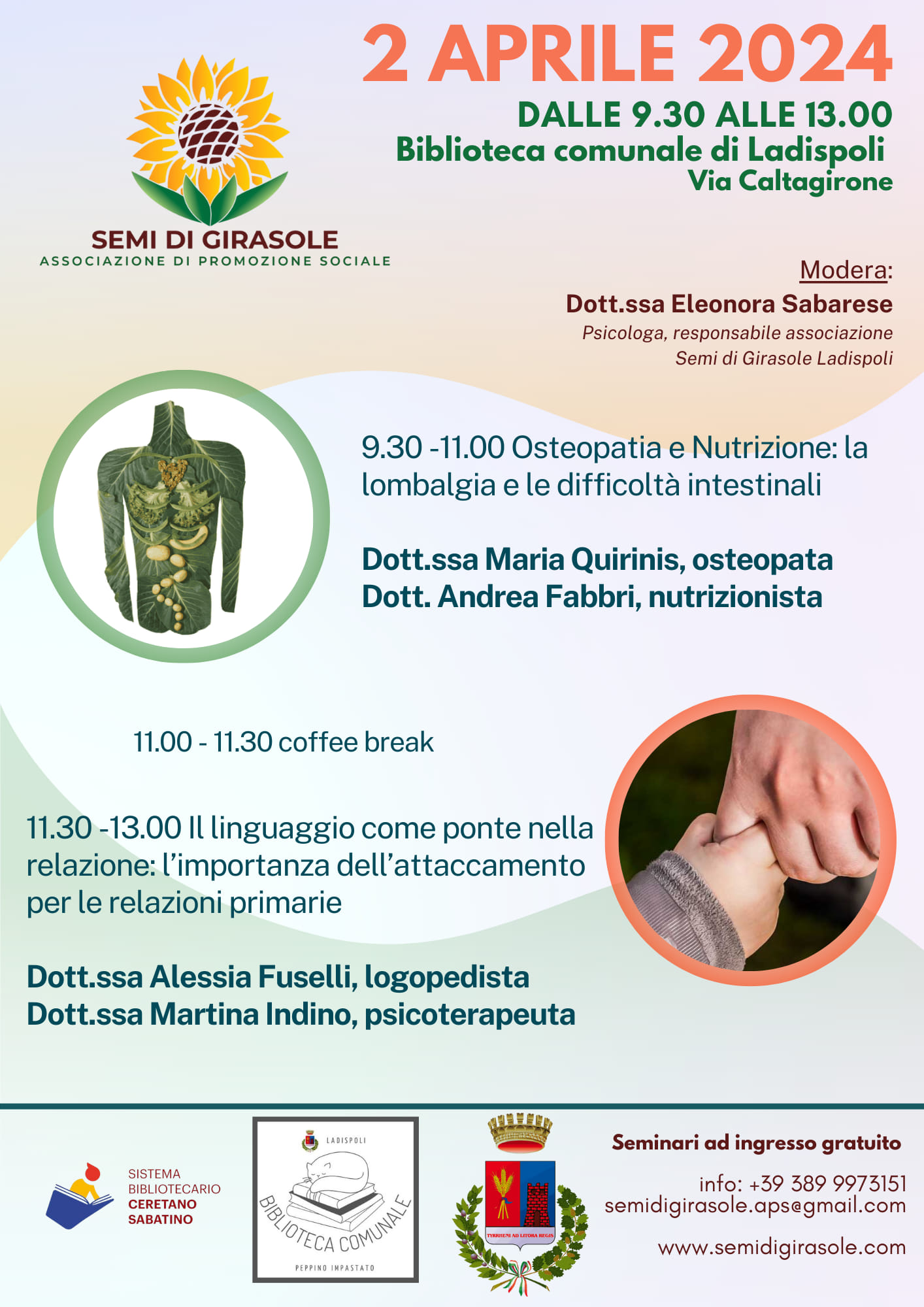 A Ladispoli martedì 2 aprile si tengono due seminari curati dall’Associazione di promozione sociale Semi di Girasole: