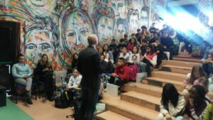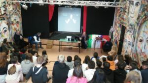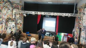 Mercoledì e venerdì L’agone ha portato la sua impronta di formazione e informazione alla “Corrado Melone” di Ladispoli, grazie al contributo del criminologo Gianluca Di Pietrantonio, che ha incontrato otto classi della prima e otto classi della seconda media. Le gradinate della sala teatro erano stipate di ragazzi; il vociare caratteristico dei giovani diventa magicamente silenzio incorrotto quando inizia a parlare il criminologo.