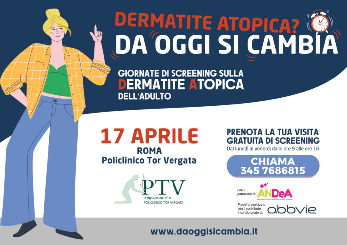 Ritornano a Roma i consulti dermatologici gratuiti della campagna nazionale “Dermatite atopica? Da oggi si cambia”, realizzata con il Patrocinio di ANDeA (Associazione Nazionale Dermatite Atopica), che hanno lo scopo di promuovere la diagnosi e di aiutare i pazienti adulti nella remissione della malattia attraverso appuntamenti su prenotazione con i medici dermatologi in diversi centri ospedalieri di eccellenza in tutta Italia.
