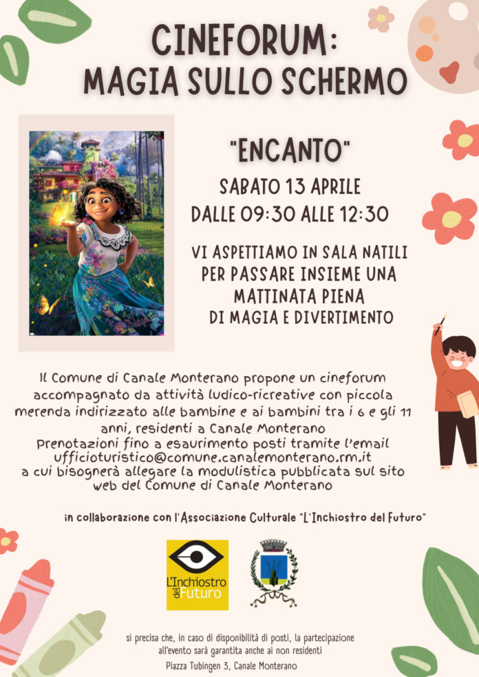 Sabato 13 aprile andrà in scena il secondo appuntamento del progetto “Magia sullo schermo”, cineforum gratuito promosso dal Comune di Canale Monterano ed accompagnato da attività ludico-ricreative e piccola merenda, dedicato ai piccoli spettatori di età compresa tra i 6 e gli 11 anni residenti a Canale Monterano. Gli incontri avverranno presso la sala Natili (Piazza Tubingen 3) e saranno tenuti dagli operatori volontari del servizio civile e dall’assistente sociale.
