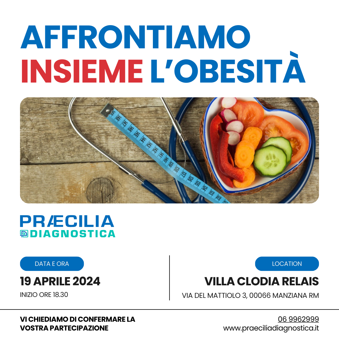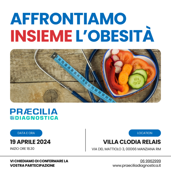 Praecilia organizza “Affrontiamo insieme l’obesità”, che si terrà il 19 aprile, con inizio alle 18.30 a Villa Clodia Relais (via del Mattiolo 3, 00066 Manziana).