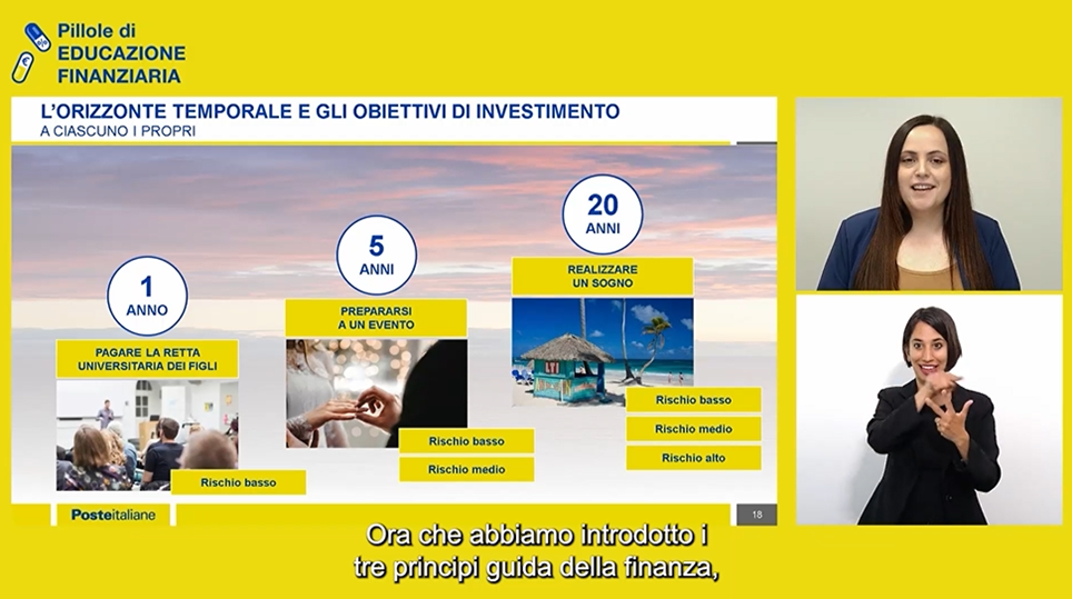 I Webinar, promossi da Poste Italiane, hanno l’obiettivo di divulgare e diffondere una cultura finanziaria, assicurativa e previdenziale per compiere scelte consapevoli e coerenti con gli obiettivi personali e familiari. I webinar saranno disponibili per tutti i cittadini anche con sottotitoli e interprete LIS.
