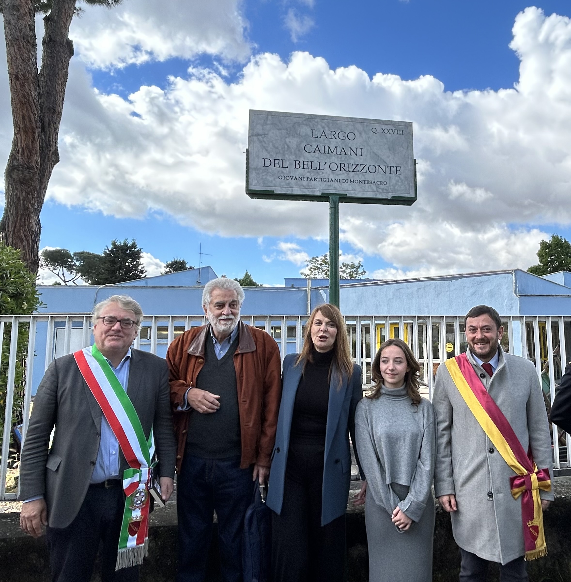 Un nuovo largo accanto alla scuola intitolato a quei giovani partigiani che si facevano chiamare “i Caimani del Bell’Orizzonte” perché usavano nuotare in un’ansa dell’Aniene, a Montesacro, a pochi passi dalla scuola che frequentavano, il liceo Orazio. Per loro una canzone scritta e interpretata dal Trio Monti e cantata dallacentinaia di studenti, un murale realizzato dai ragazzi insieme al professor Ugo Claudio Gallici, con la supervisione dell’artista Manuela Merlo, progetto risultato vincitore del Premio Mamma Roma e i suoi figli migliori, con Herbol come sponsor tecnico. Infine un film realizzato dai ragazzi sui loro “Caimani” con la regia di Andrea Rusich risultato vincitore del bando cinema e scuola di Mic e Mim