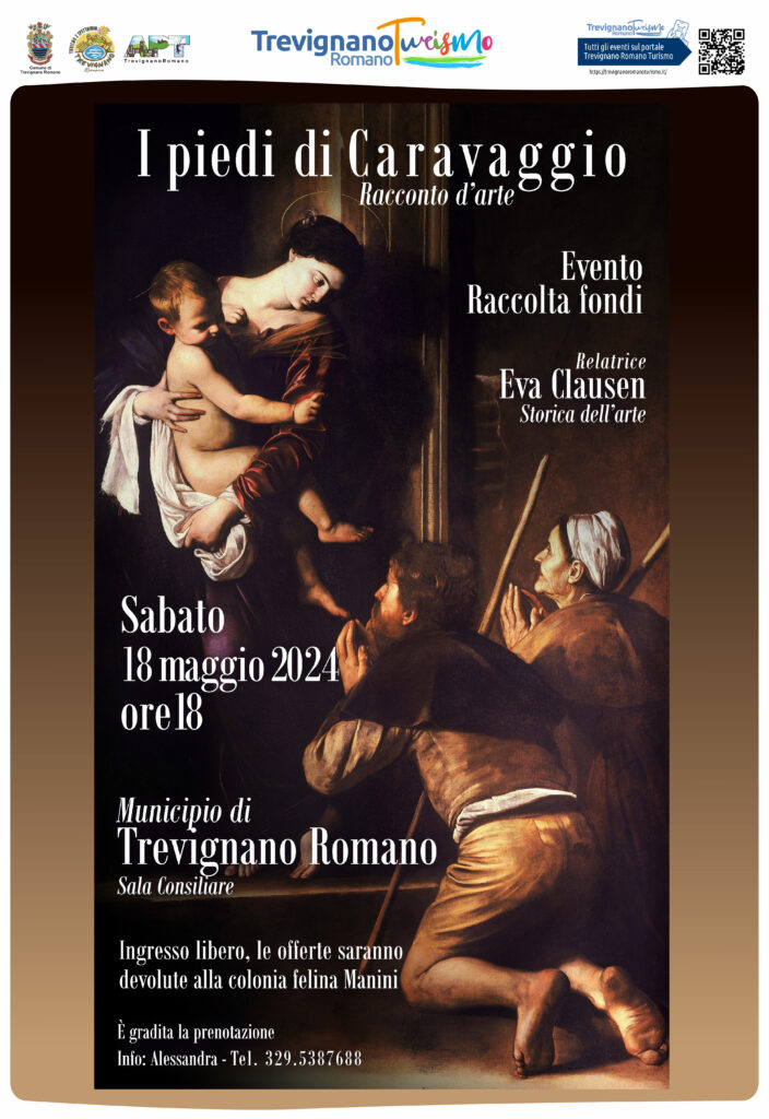 Il pittore maledetto, il pittore geniale, protagonista di una vita irrequieta, condannato a morte dopo aver ucciso un uomo, sempre in fuga e malamente morto, quasi dimenticato, sulla spiaggia della Feniglia a Porto Ercole, dove è sepolto. Su Caravaggio la narrazione è ricca, a partire dalle sue frequentazioni dai cosiddetti ceti bassi fino alla sua gloria sotto le benevolenza di banchieri e porporati. Nel racconto d’arte “I piedi di Caravaggio” Eva Clausen si mette sulle orme del pittore seguendo una traccia inconsueta: i piedi. Grazie a questo filo rosso dai quadri esaminati emerge un Caravaggio molto diverso. Ribelle all’arte della illusione, esploratore senza pietà dell’animo umano in cerca di salvezza. A piedi nudi. Il naturalismo delle opere di Caravaggio si presta a fare da sfondo a un evento di beneficenza in difesa degli animali.