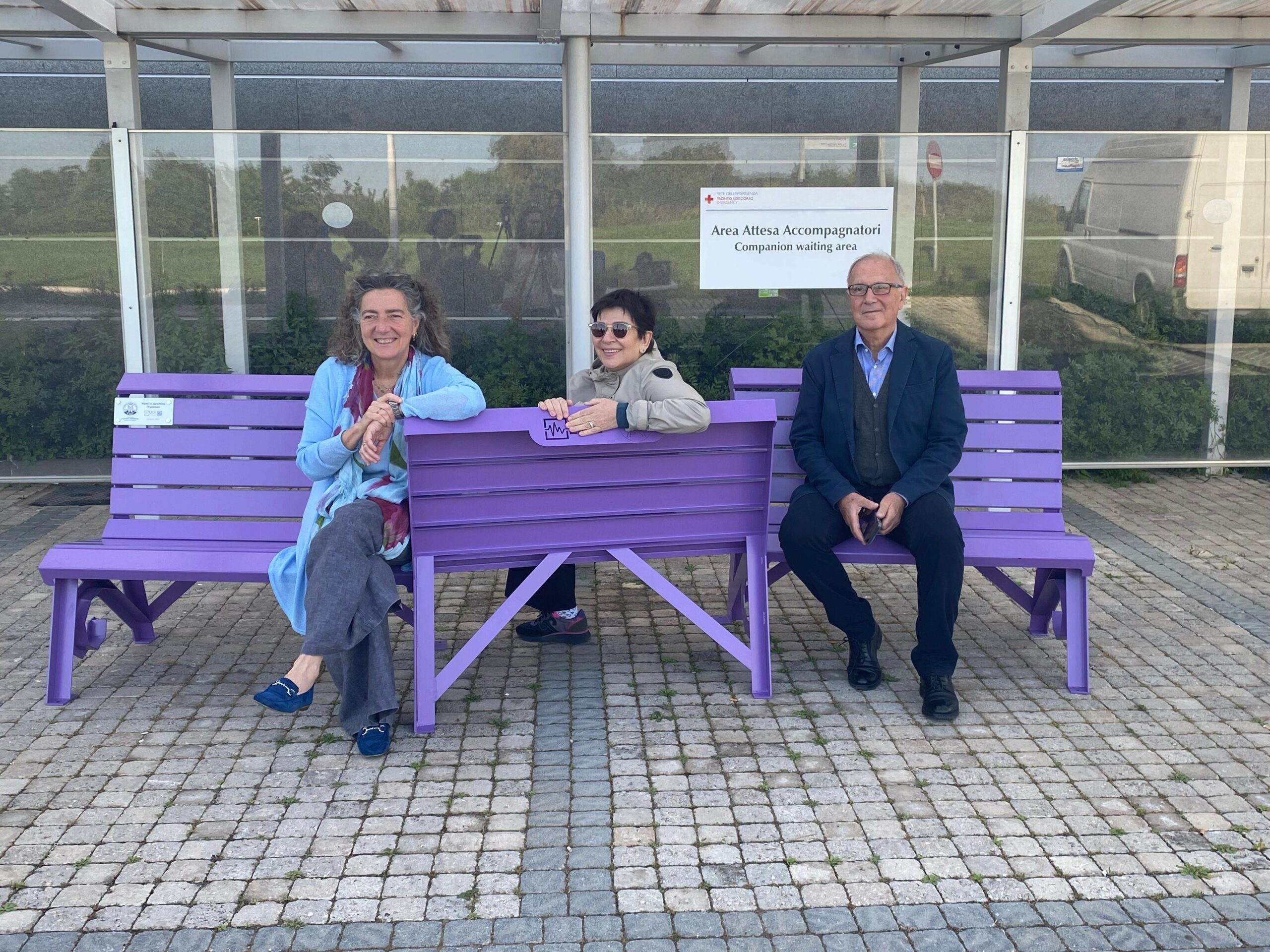 Il colore viola è associato alla consapevolezza dell’Epilessia attraverso campagne di sensibilizzazione. Questo colore è stato scelto per rappresentare solidarietà e supporto alle persone affette da tale patologia, contribuendo a diffondere informazioni e sconfiggere insieme lo stigma e la paura del “diverso”. Perché siamo tutti unici con le nostre peculiarità. Unire i due concetti è stato facile, si sono incontrati su una panchina!