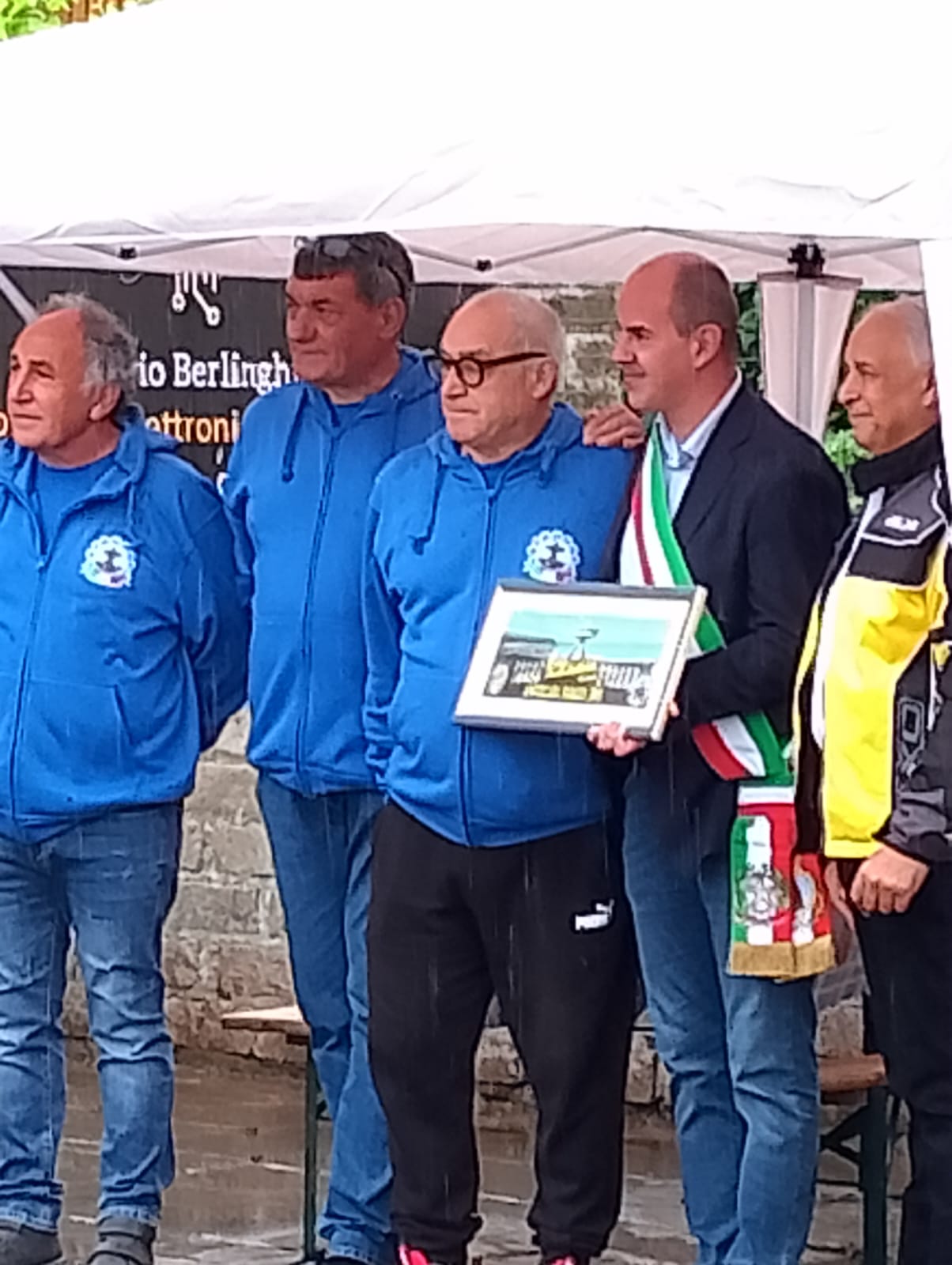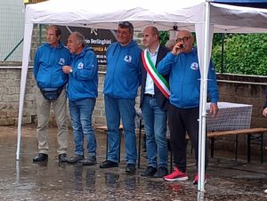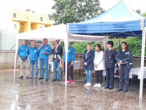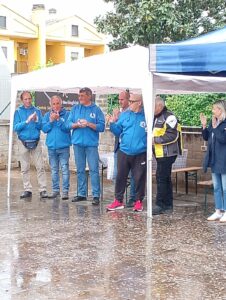Nonostante l’inclemenza del tempo, in un piazzale gremito di soci con le loro famiglie, dove faceva bella mostra di sé anche un variopinto sciame di Vespa, si é svolta la cerimonia di inaugurazione della sede con la partecipazione delle Autorità locali.