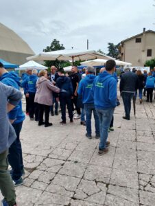 In un clima di amichevole convivialità, sfidando anche la pioggia, la festa si é protratta fino al tardo pomeriggio, allietata dagli aromi e dal gusto di una squisita e croccante porchetta.