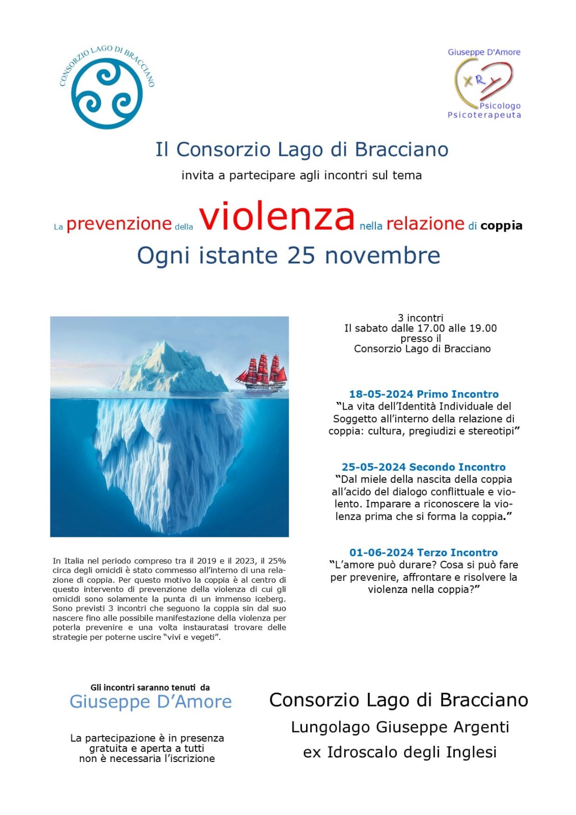 Il consorzio del lago invita a partecipare agli incontro sul tema della prevenzione della violenza nelle relazioni di coppia “Ogni istante 25 Novembre” a cura di Giuseppe D’Amore, Psicologo e Psicoterapeuta.