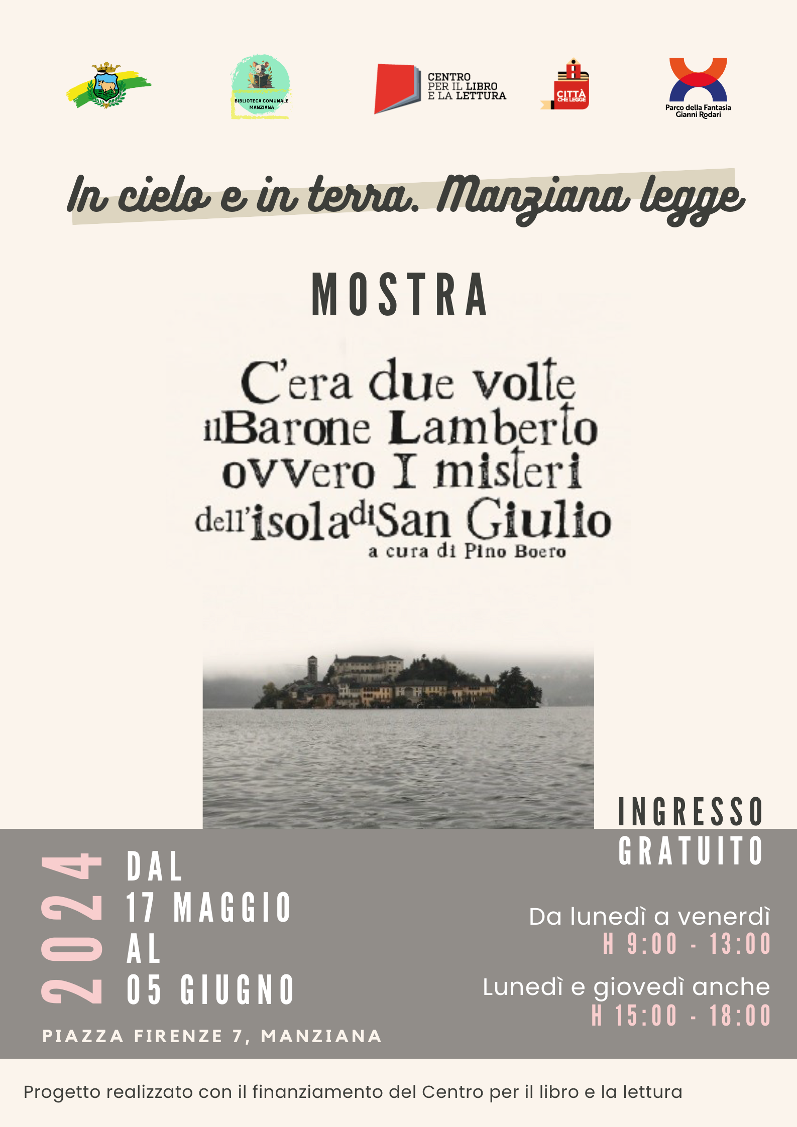 la Mostra “C’era due volte il Barone Lamberto ovvero I misteri dell’isola di San Giulio” del Parco Della Fantasia Gianni Rodari di Omegna (VB), paese natale dello scrittore, stabilendo così un rapporto tra i suoi luoghi dell’infanzia e Manziana, paese da lui scelto e amato.