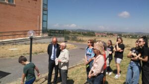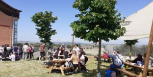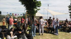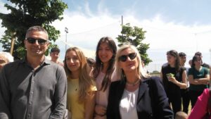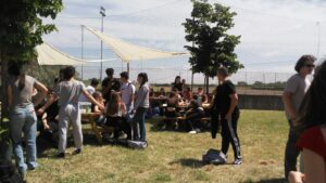 Il 16 maggio 2024 è stata inaugurata la prima aula verde del Liceo Vian. Questa prima realizzazione, avvenuta presso la sede di Anguillara, è carica di significati: tutto è cominciato con la donazione di 4 alberi da parte della famiglia Doria, in memoria del figlio Giancarlo, ex-studente del Vian a cui l’aula è stata intitolata. Grazie all’impegno della comunità scolastica è stato elaborato il progetto di uno spazio didattico all’aperto e si sono raccolti i fondi. Tutte le componenti – docenti, ata, studenti e genitori – hanno collaborato da due anni a diverse iniziative: mercatini di natale, concerti, crowfunding, innaffiature estive, etc… arrivando ad un risultato che viene vissuto con orgoglio, scoprendo le difficoltà e la fatica del costruire, ma anche la soddisfazione immensa di poter dire “questo lo abbiamo fatto noi”. L’inaugurazione è stata appositamente immaginata come una festa campestre nella location dell’aula verde, con cibo e musica dal vivo, suonata dalla “Furti del bosco band”. La Dirigente Lucia Lolli ha ringraziato tutti i protagonisti di questa piccola avventura, in particolare le professoresse Mariapia Casale, Giorgia Rosati e la rappresentante dei genitori Francesca Parisi Presicce, alla presenza del sindaco di Anguillara e di tutti coloro che sono voluti intervenire: possiamo garantire che tutti gli adulti presenti abbiano guadagnato un bonus di giovinezza da queste due ore di immersione nel verde, accanto a questi meravigliosi ragazzi in festa. Il giorno dopo già due classi del liceo svolgevano una lezione di lettere sui tavolini dell’aula e una conversazione filosofica sul prato, all’ombra dei tigli da cui è partito tutto.