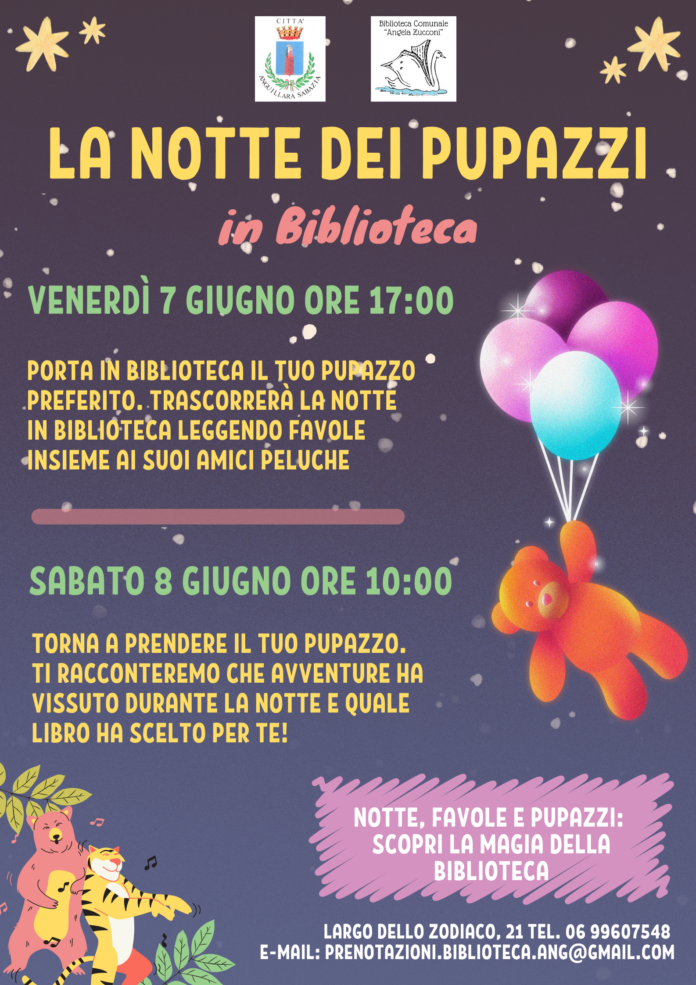 Riceviamo e pubblichiamo – Doppio appuntamento ad Anguillara Sabazia per “La Notte dei pupazzi in biblioteca”!