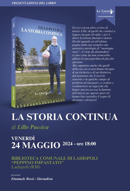 Nella Biblioteca di Ladispoli venerdì 24 maggio alle 18 c’è alla presentazione del nuovo libro di Rosolino (Lillo) Puccica dal titolo “La storia continua”, edito da La Caravella.