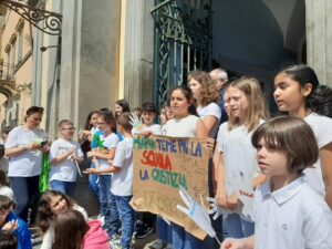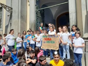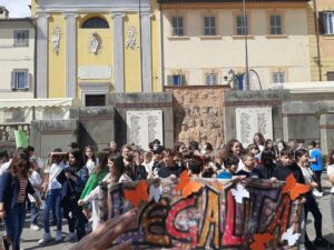La manifestazione ha avuto inizio intorno alle 10.30, quando in piazza IV Novembre, sono confluite in corteo numerose classi dell’IC Bracciano, a loro si è poi unito il sindaco di Bracciano, Marco Crocicchi che salutando i ragazzi ha detto loro: “State facendo un rumore bello e importante ed è bello vedervi qui tutti riuniti pieni di entusiasmo in questa occasione ricca di significato”. Subito i ragazzi hanno canto la canzone di Fabrizio Moro, “Pensa”, un brano musicale che parla proprio dell’impegno nella lotta alla mafia e richiama le nuove generazioni ad avere uno spirito critico ispirato al coraggio e all’impegno civile. I bambini si sono stretti poi in un grande cerchio ampio quanto la piazza ed hanno continuato a far sentire il loro “No alla Mafia”.