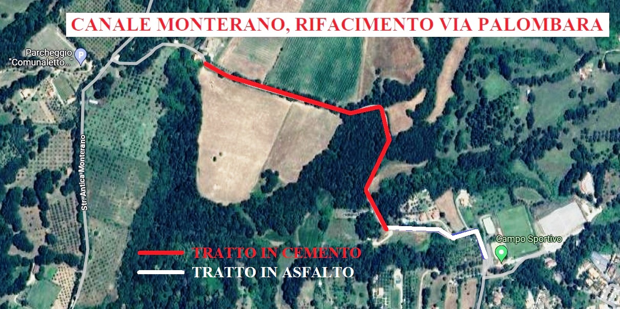 “È un’opera di primaria importanza per il nostro Comune – spiega l’Assessore ai Lavori Pubblici e Turismo Andrea Magagnini – perché permetterà di rifare completamente un tratto strategico e davvero molto ammalorato. Strategico perché Via Palombara è la via principale di accesso all’Antica Monterano, congiungendo Canale al parcheggio di Casale Persi e quindi alla Riserva e al Pianoro di Monterano.Un tratto dove asfalto e cemento erano purtroppo solo un ricordo, e mettevano quotidianamente a rischio l’incolumità di pedoni e automobili. I lavori di preparazione sono già partiti, ma dal 5 al 15 Giugno sarà necessario chiudere completamente la strada per permettere l’armatura delle parti in cemento e il rifacimento delle opere di servizio. La nuova pavimentazione sarà più larga della precedente con l’eliminazione della profonda cunetta che la contraddistingueva, ma non così ampia come desideravamo, visto che la “macera”, i grandi sassi che ne contraddistinguono i lati, non sono stati toccati poiché vincolati. Ne risulterà comunque una strada decisamente più fruibile, rendendo Monterano finalmente praticabile per tutti i camminatori e i veicoli, anche quelli più sportivi. Ovviamente rimarranno aperte sia Via Casalini, che diventerà per l’occasione a doppio senso di circolazione anche nei festivi e prefestivi e le Vie Grottini e Diosilla, per raggiungere il parcheggio omonimo. Chiediamo ovviamente a residenti e utilizzatori di prestare attenzione e collaborare alla riuscita della realizzazione dei lavori.”