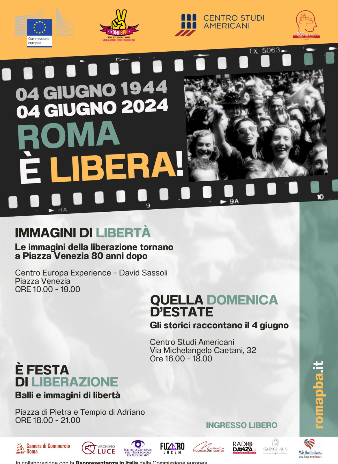 Gli storici raccontano il 4 giugno. Presso il Centro Studi Americani si riflette su come si arrivò a quel giorno. Presenti Roberto Sgalla, Direttore Csa, Massimo Pronio Rappresentanza Italiana Commissione Europea, David I. Kertzer Professore della Brown University e vincitore Prermio Pulitzer, Cristiano Migliorelli- Resposabile Valorizzazione Archivio Luce, Riccardo Sansone – Storico, Domenico Vecchiarino, – Ricercatore di intelligence e geopolitica, Roberto Balzani – Presidente Museo della liberazione, Mirko Bertarelli e Tiziano Gianandrea -Team di ricerca Il Civico Giusto. Coordina l’incontro Paolo Masini Ideatore e coordinatore de il Civico Giusto, le conclusioni saranno di Maria Grazia Lancellotti Coordinatrice Rete Memorie e della ricerca storica de Il civico Giusto. L’evento realizzato in collaborazione con Rai Cultura, Rai Storia, We The Italians.