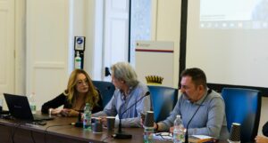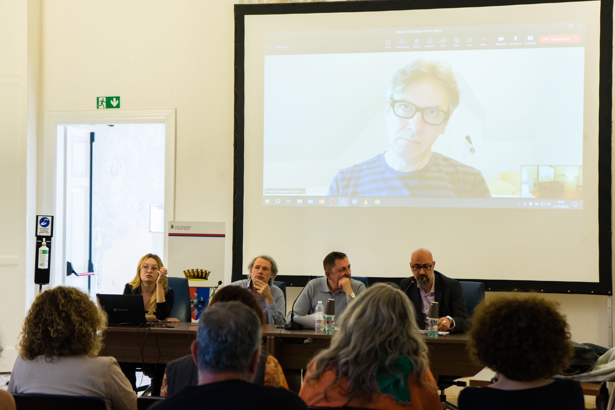 Davanti ad una sala attenta e interessata, si sono confrontati Giuseppe Capparelli – curatore e storico dell’arte, Fabio De Chirico – direttore Servizio II Arte contemporanea Direzione Generale Creatività Contemporanea Ministero della Cultura, Domenico Mangano – artista. L’incontro è stato moderato da Lorenzo Benedetti – curatore e storico dell’arte.