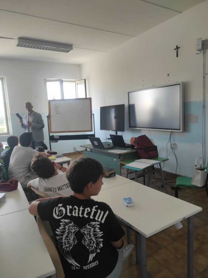 Di recente si era verificato un episodio spiacevole: una ragazzina era stata vittima di insulti su un gruppo whatsapp creato dai suoi compagni di classe; Gianluca ha iniziato il suo intervento sottolineando quanto sia importante saper utilizzare il cellulare in modo consapevole e rispettoso: ha spiegato che la tecnologia, se non usata correttamente, può diventare uno strumento di abuso e violenza psicologica, come nel caso del cyberbullismo; ha parlato della società odierna, mettendo in evidenza come i giovani spesso abusino della tecnologia per divertirsi, senza rendersi conto delle conseguenze delle loro azioni; ha coinvolto attivamente i ragazzi, che hanno ascoltato con attenzione e partecipato con entusiasmo.